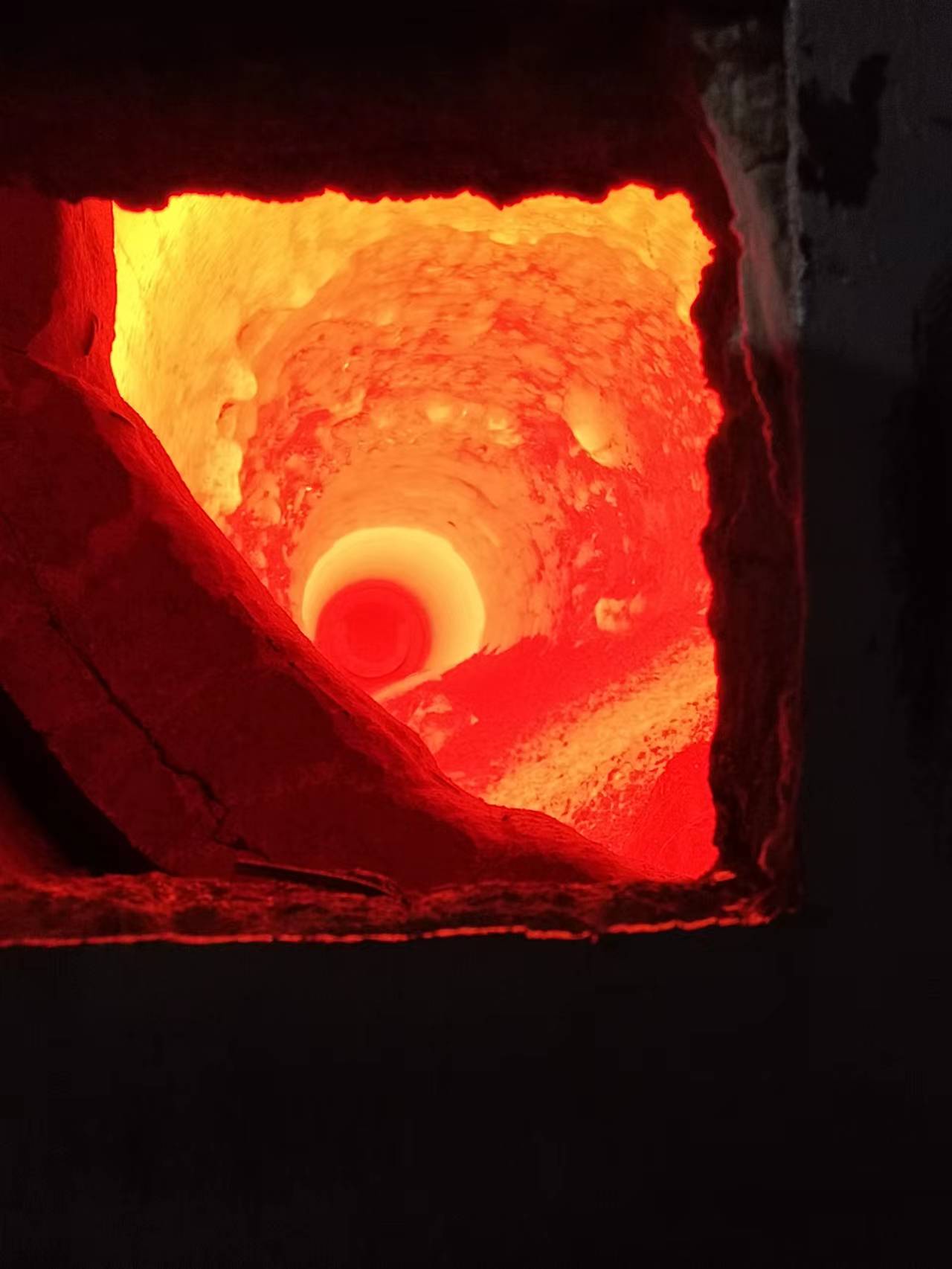 分析2 :A出现粉末是结圈造成的岀料不畅过烧形成粉末。我看了一下炉内燃烧器没有问题,火焰也没有问题,炉温有点高,加 快  退料速度可能就好了。但目前首先要处理结圈用断火快降温快升温两次就处理了 。