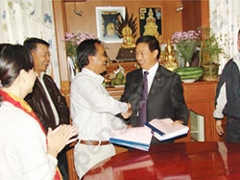 公司董事长总经理王家安在公司会宾厅会见越南柴山水泥厂厂长,恰他回转窑生产线合作事宜。