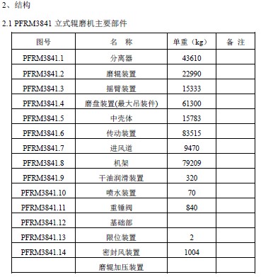 PFRM3841辊式磨用于水泥原料粉磨,其工作原理是:原料通过锁风阀、下料斜管落到磨盘中央,恒速旋转着的磨盘借助于离心力的作用将原料向外均匀分散、铺平,使其形成一定厚度料床。在此过程中物料同时又受到磨盘上多个磨辊的碾压,并在压力辊子的作用下被粉碎。在离心力的连续驱使下使物料不断向磨盘外缘运动,离开磨盘的物料遇到通过风环进入磨内的热气体并随之上升经过磨盘中壳体进入到分离器中,在此过程中物料与热气体进行了充分的热交换,水分迅速被蒸发。分离器控制着磨机出口的成品粒度,大于规定尺寸的颗粒被分离,送回至磨盘,只允许满足要求的颗粒通过。