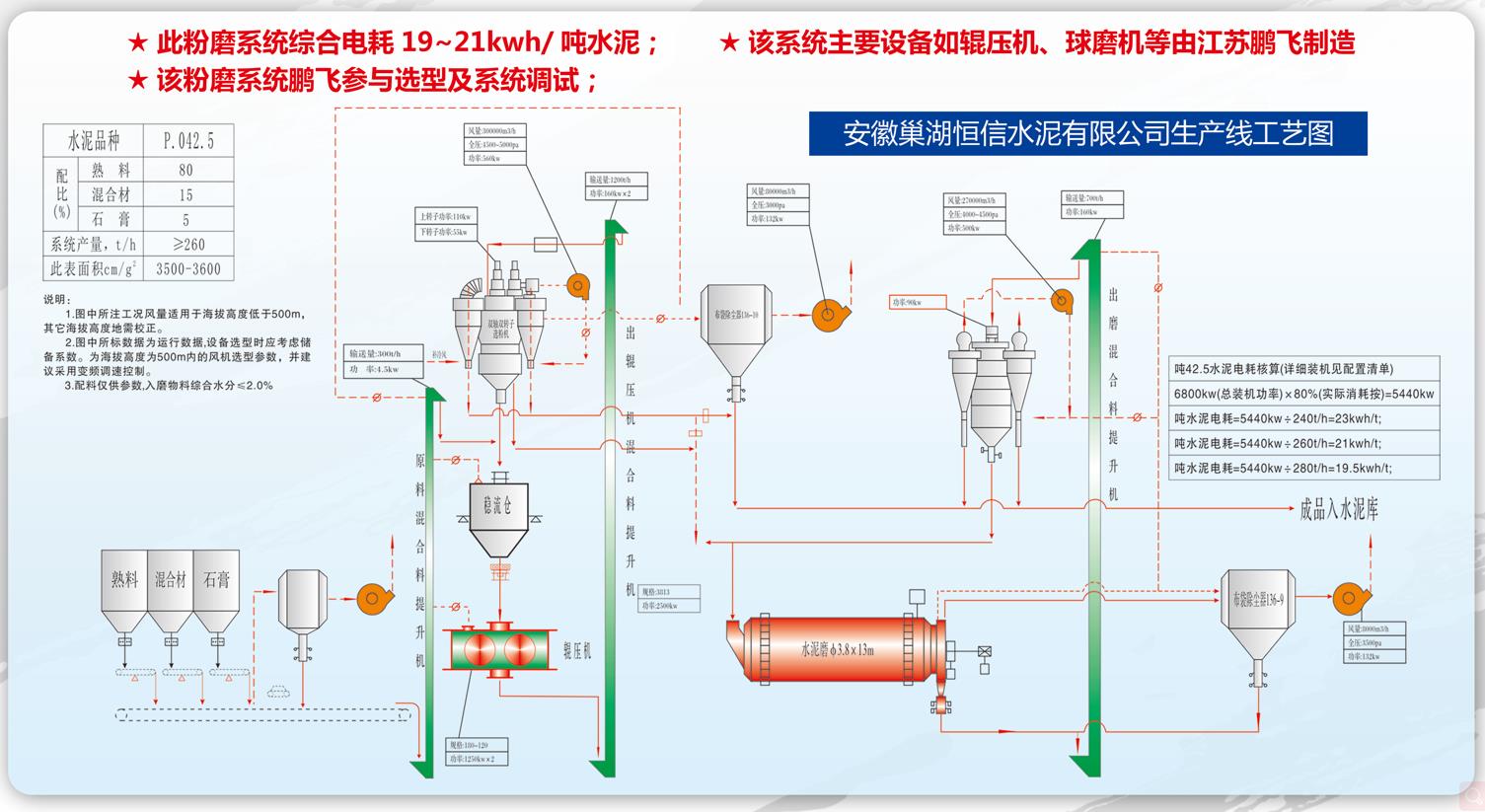 该系统工艺简单,设备少,维护工作量少,水泥成品全部经过球磨机粉磨,成品粒度分布较宽,水泥性能稳定。